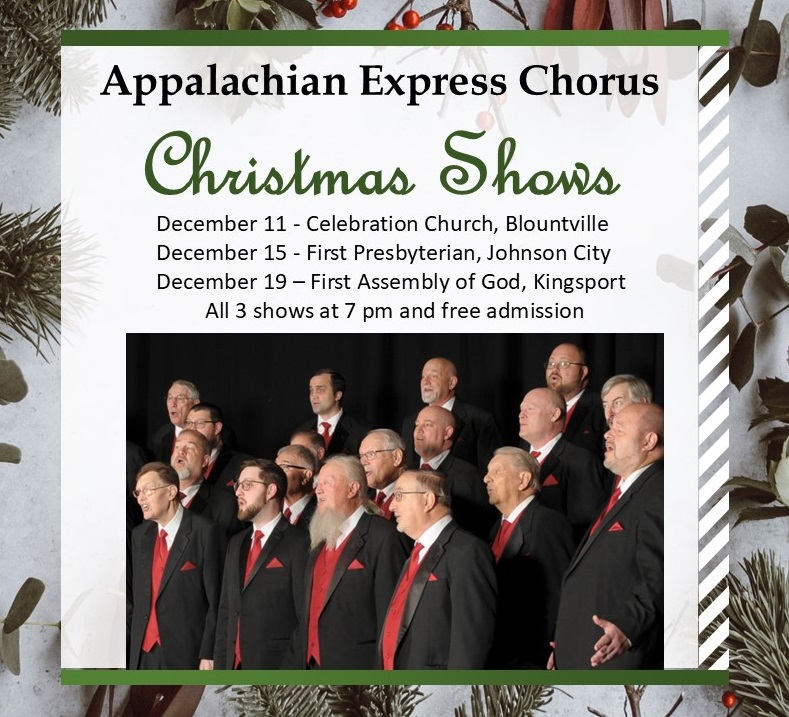 Why not hire Appalachian Express Chorus to entertain at your next event? We can perform at corporate functions, charity events, community Entertainment events, birthday parties, christmas parties, awards nights, weddings, engagements, anniversaries, engagements, and even funerals and memorial services.